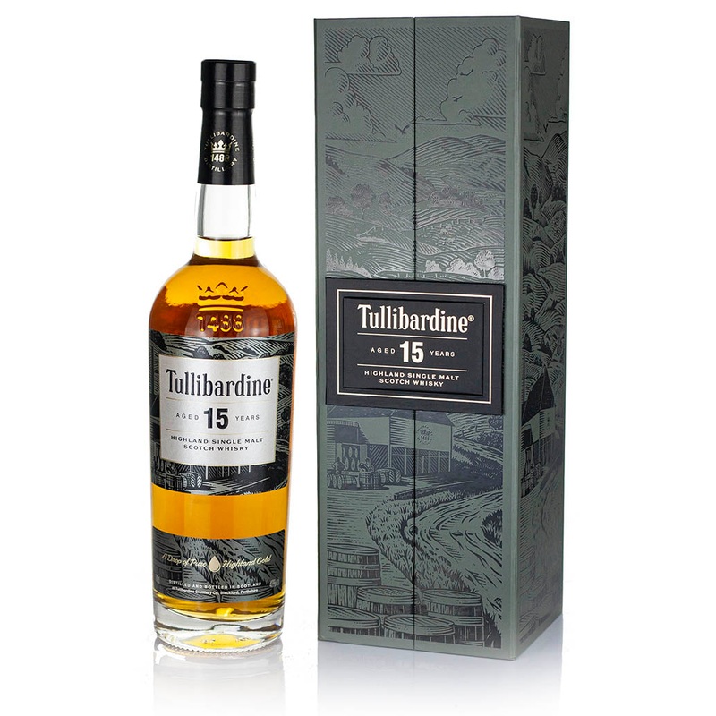 Tullibardine 15 Year Old Highland single malt Scotch whisky. Matured in first-fill Bourbon casks.